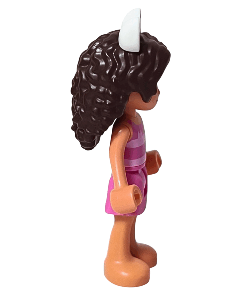 ✅ ピンク×ラベンダーのストライプトップスは、明るくて元気いっぱいのギャビーにぴったり。見るだけでハッピーになれる配色なのよ🌈