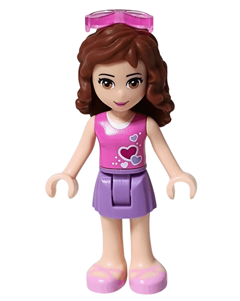 ✅ ラズベリーピンクのトップスには、ハートのプリントがいっぱい💖発明好きだけど、かわいさだって忘れないオリビアらしいコーデなの。